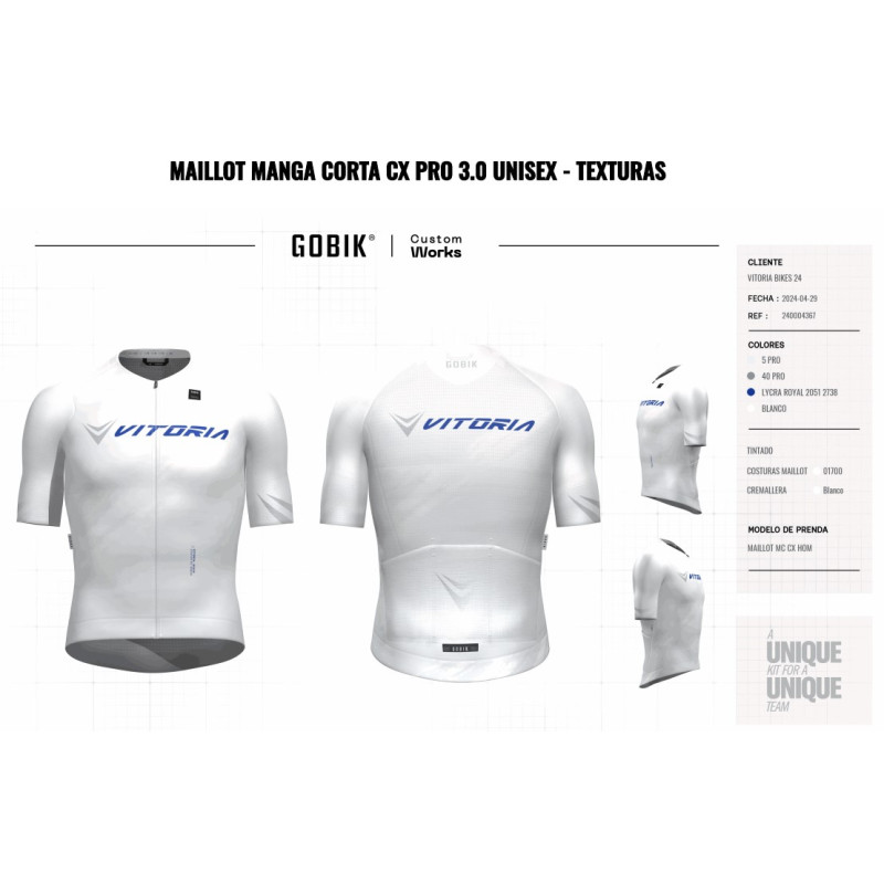 El nuevo maillot de manga corta Gobik CX Pro 3.0 supone una renovación profunda del modelo icónico de la marca. Manteniendo su gran versatilidad, esta tercera generación introduce mejoras significativas en diseño y rendimiento. Ahora es más aerodinámico, transpirable y ligero, integrando características de los modelos de gama alta para crear un producto premium en todos los aspectos. Con un elegante diseño exclusivo de Vitoria en colores claros, predominantemente blanco con detalles en plata, este maillot destaca no solo por su estética moderna y sofisticada, sino también por sus avanzadas características técnicas.